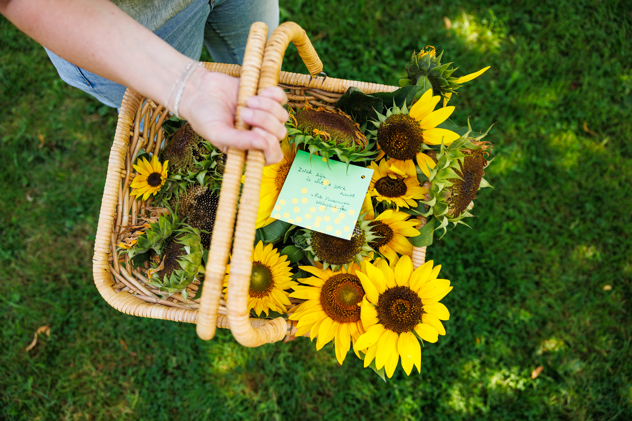 Bij een boeket zonnebloemen
