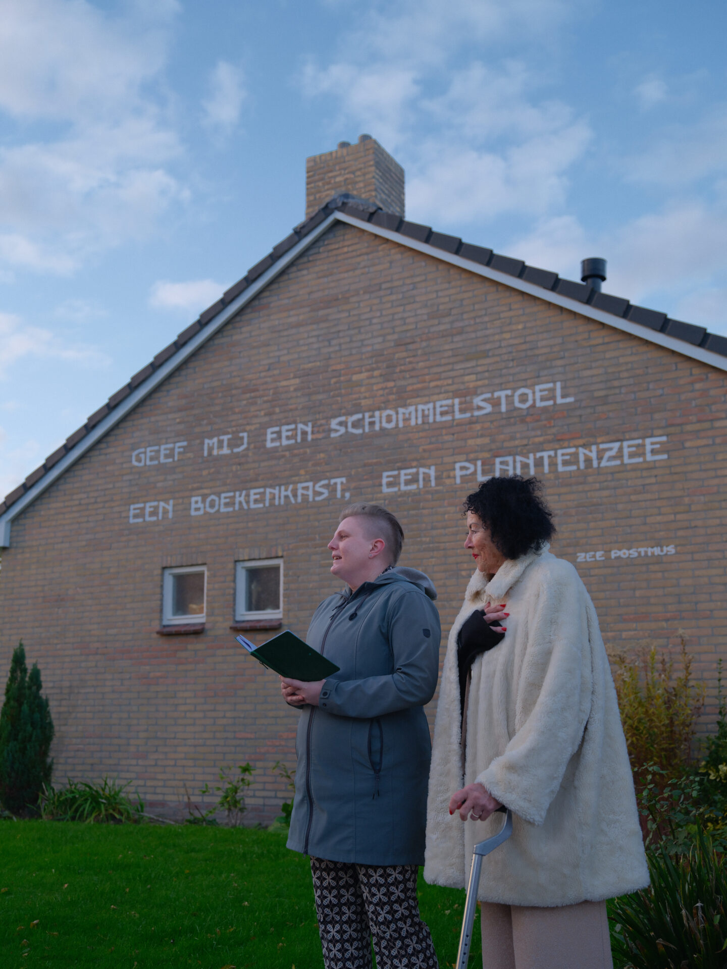 Leonie van Thús Wonen hielp bij het vinden van geschikte woningen en betrokken bewoners. “Het mooiste vind ik dat de teksten echt iets losmaken,” vertelt ze. “Sommige mensen vinden het prachtig, anderen niet, maar het zorgt er wél voor dat mensen met elkaar in gesprek gaan – van jong tot oud. Dat maakt het bijzonder.”